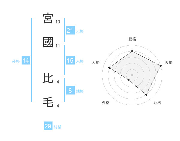 宮國 比毛さんの総格は29画の4点!