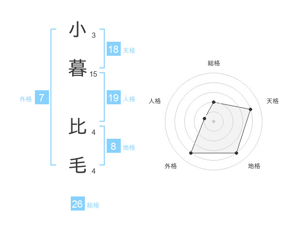小暮 比毛さんの総格は26画の2点