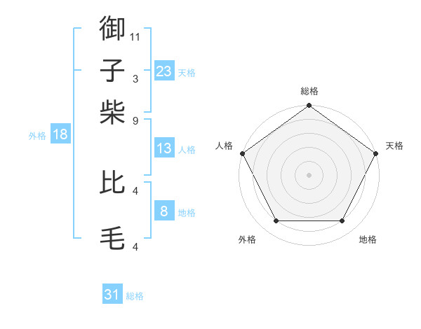 御子柴 比毛さんの総格は31画の5点!