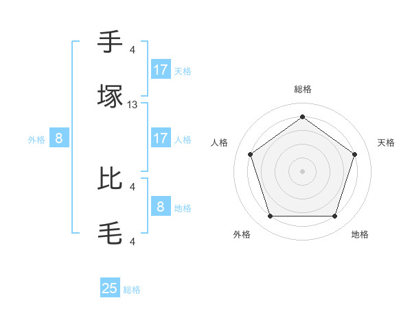 手塚 比毛さんを姓名の画数から五運を鑑定