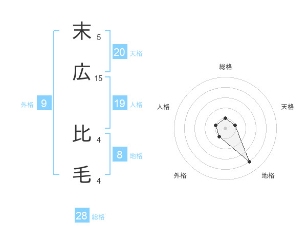 末広 比毛さんの地格は8画の4点!