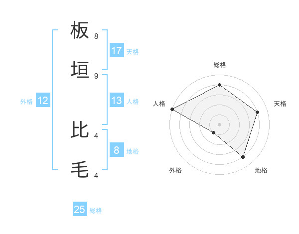 板垣 比毛さんの天格は17画の4点!