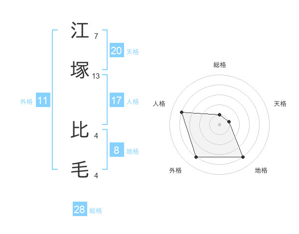 江塚 比毛さんの総格は28画の1点!