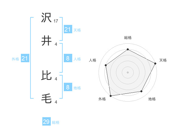 沢井 比毛さんの天格は21画の5点!