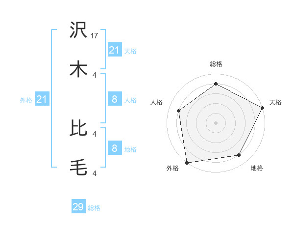 沢木 比毛さんを姓名の画数から五運を鑑定