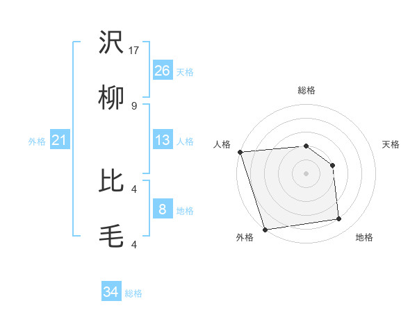 沢柳 比毛さんの総格は34画の2点!