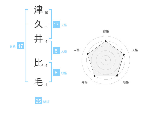 津久井 比毛さんを姓名の画数から五運を鑑定