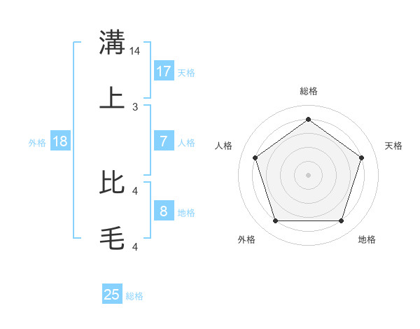 溝上 比毛さんの総格は25画の4点!