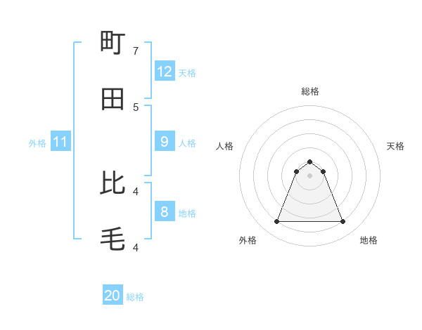 町田 比毛さんの総格は20画の1点!