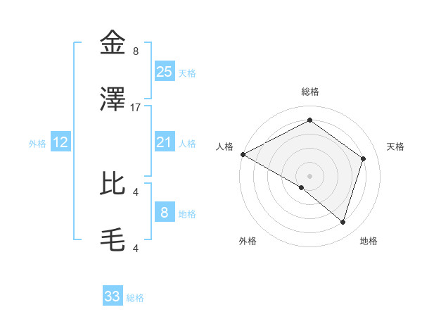 金澤 比毛さんを姓名の画数から五運を鑑定