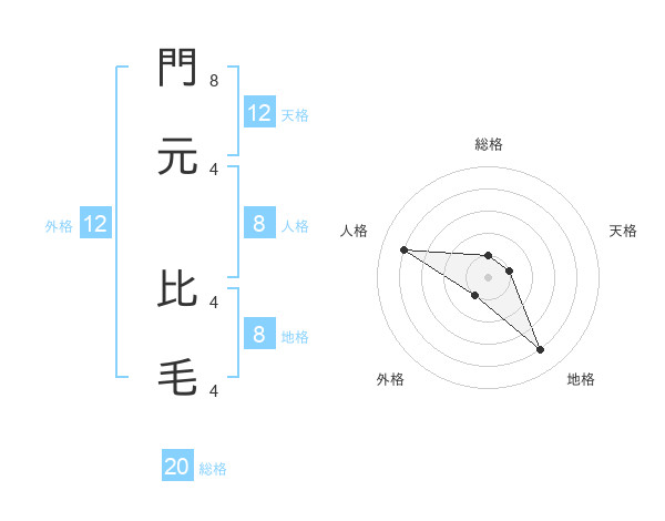 門元 比毛さんの総格は20画の1点!
