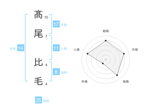 髙尾 比毛さんの総格は25画の4点!