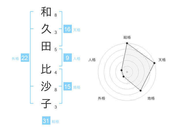 和久田 比沙子さんを姓名の画数から五運を鑑定