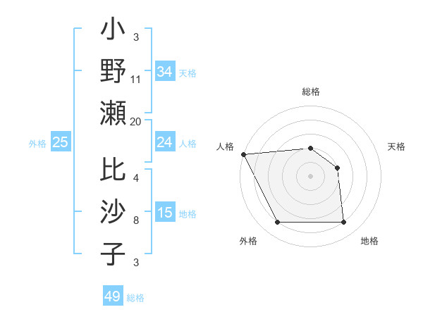小野瀬 比沙子さんを姓名の画数から五運を鑑定