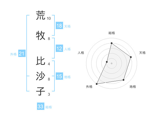 荒牧 比沙子さんの天格は18画の4点!