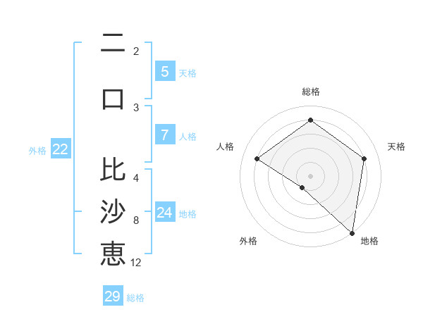 二口 比沙恵さんを姓名の画数から五運を鑑定