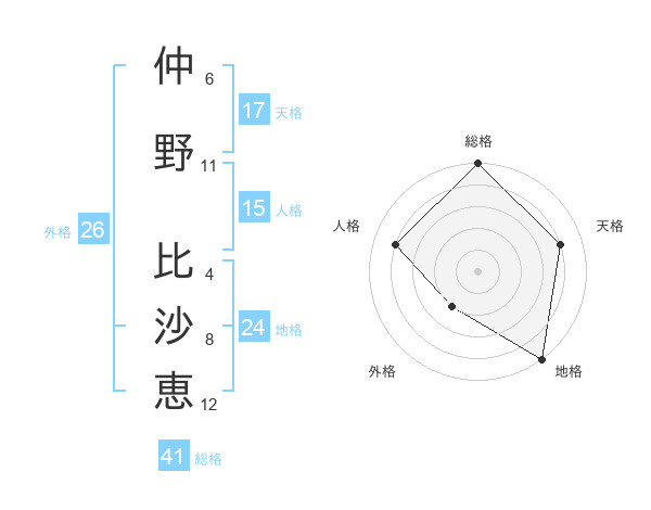 仲野 比沙恵さんを姓名の画数から五運を鑑定