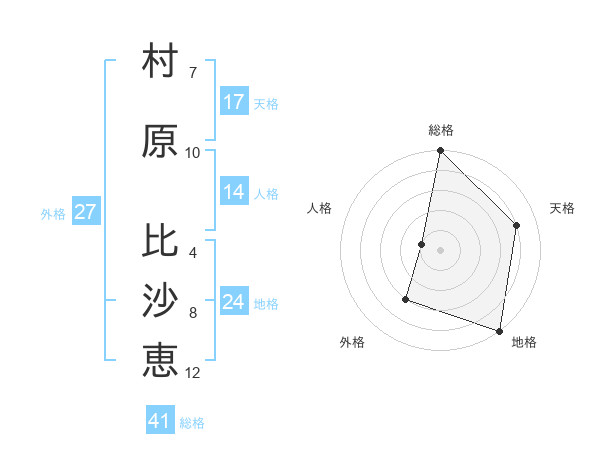村原 比沙恵さんを姓名の画数から五運を鑑定