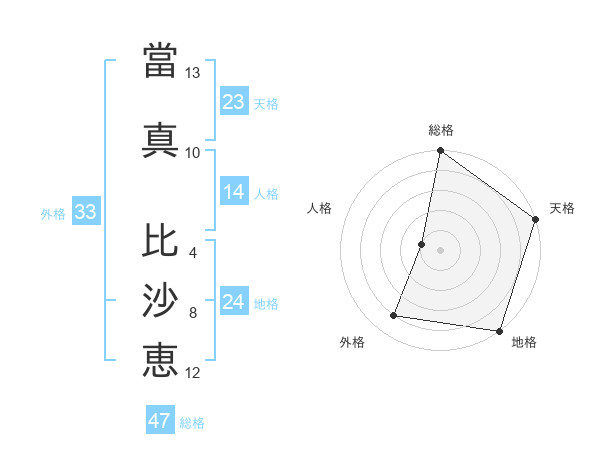 當真 比沙恵さんを姓名の画数から五運を鑑定