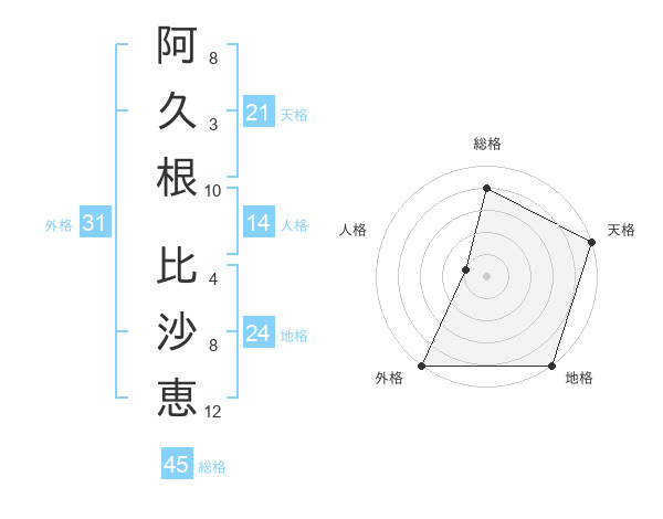 阿久根 比沙恵さんの総格は45画の4点!