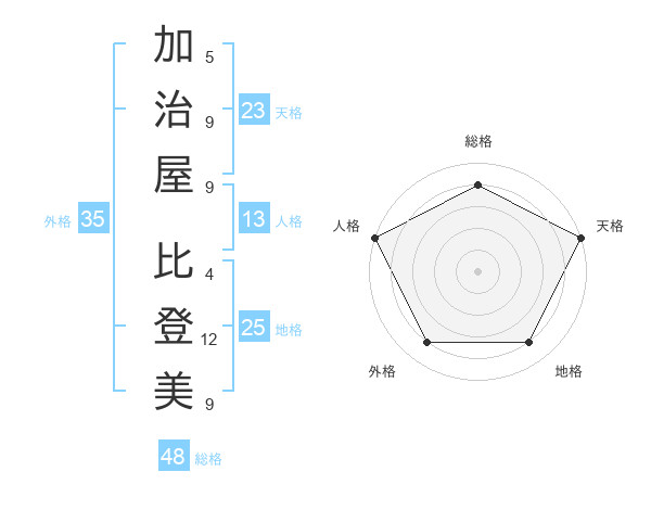 加治屋 比登美さんを姓名の画数から五運を鑑定