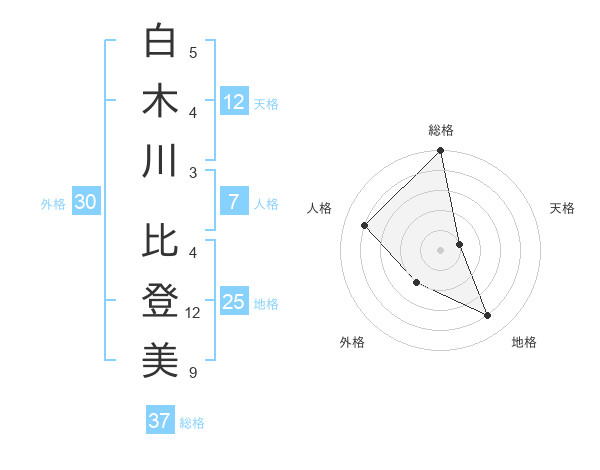 白木川 比登美さんの総格は37画の5点