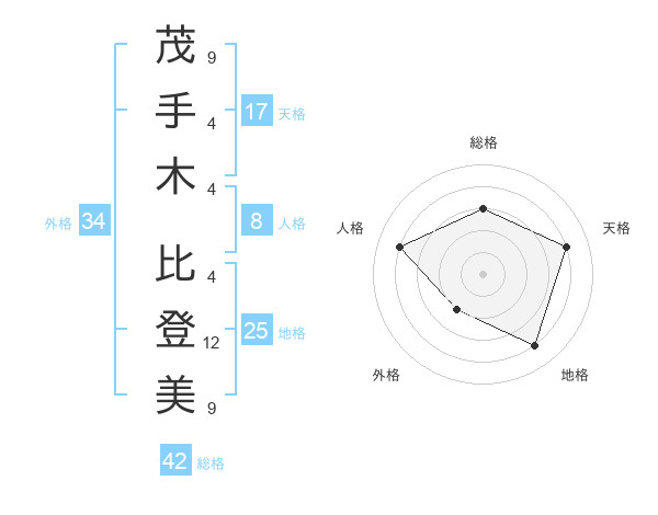 茂手木 比登美さんの天格は17画の4点!