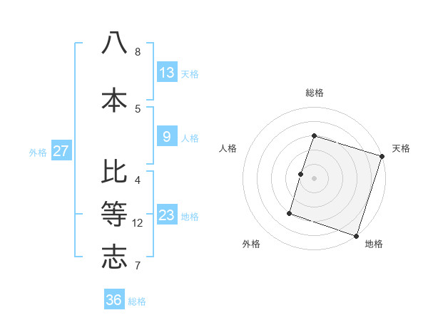 八本 比等志さんの天格は13画の5点!
