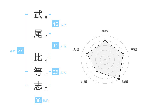 武尾 比等志さんを姓名の画数から五運を鑑定