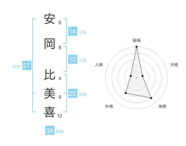 安岡 比美喜さんを姓名の画数から五運を鑑定