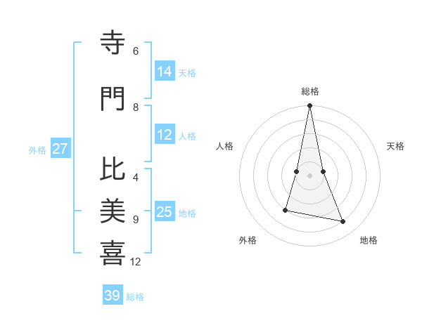 寺門 比美喜さんを姓名の画数から五運を鑑定