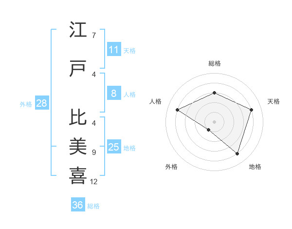 江戸 比美喜さんを姓名の画数から五運を鑑定