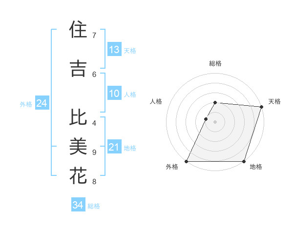 住吉 比美花さんを姓名の画数から五運を鑑定