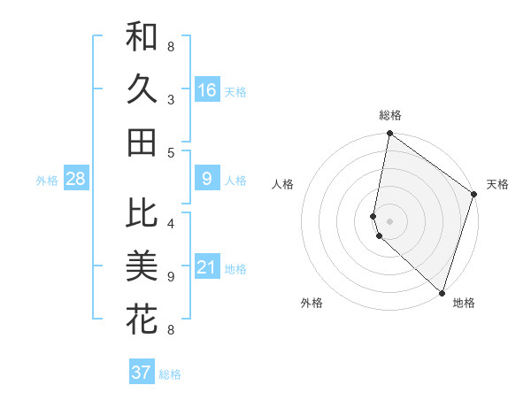 和久田 比美花さんを姓名の画数から五運を鑑定