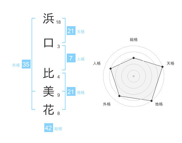 浜口 比美花さんを姓名の画数から五運を鑑定