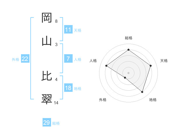 岡山 比翠さんを姓名の画数から五運を鑑定