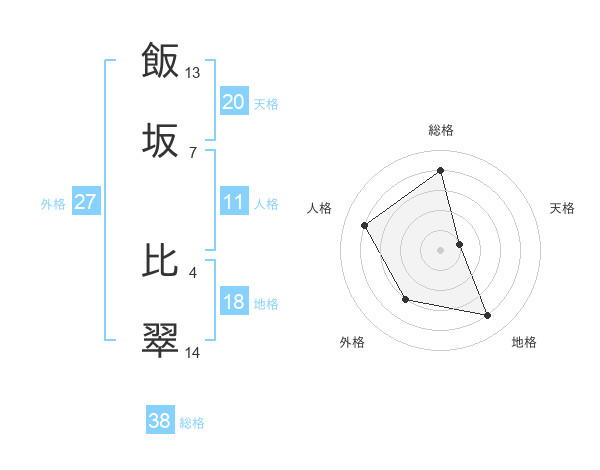 飯坂 比翠さんの総格は38画の4点!