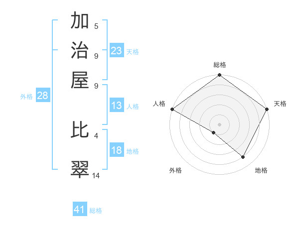 加治屋 比翠さんの天格は23画の5点!