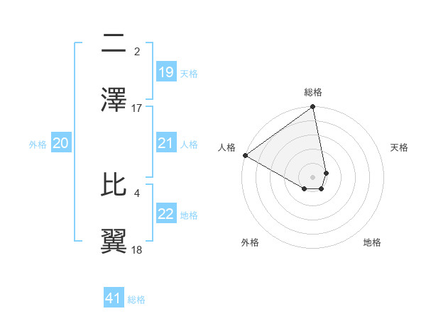 二澤 比翼さんを姓名の画数から五運を鑑定