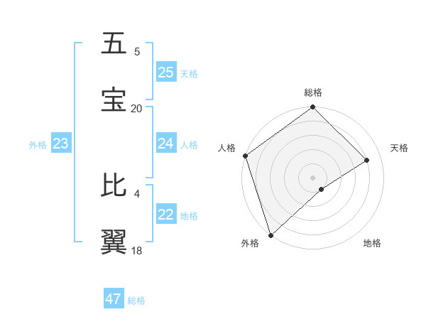 五宝 比翼さんの総格は47画の5点!