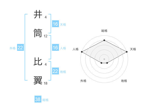 井筒 比翼さんの総格は38画の4点!