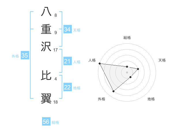 八重沢 比翼さんを姓名の画数から五運を鑑定