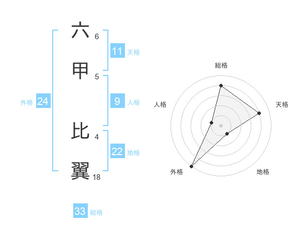六甲 比翼さんの総格は33画の4点!