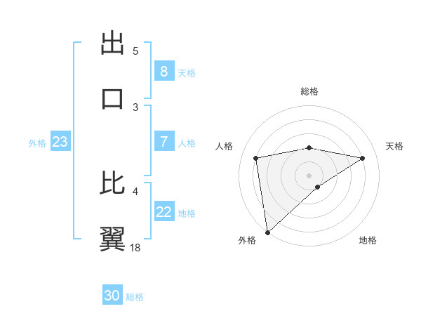 出口 比翼さんの総格は30画の2点!