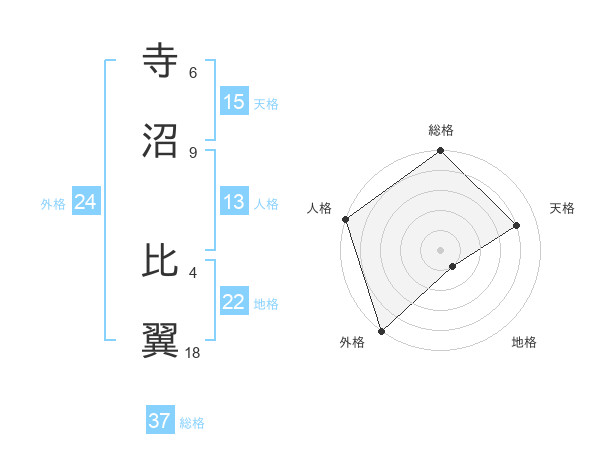 寺沼 比翼さんの総格は37画の5点!