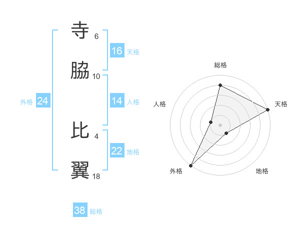 寺脇 比翼さんを姓名の画数から五運を鑑定