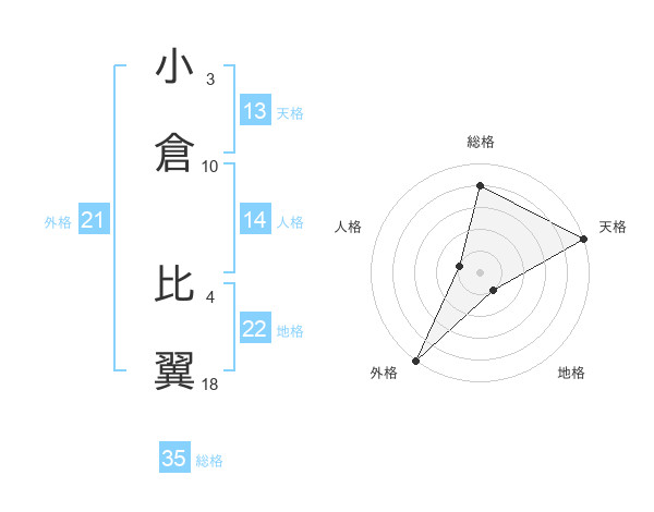 小倉 比翼さんの天格は13画の5点!