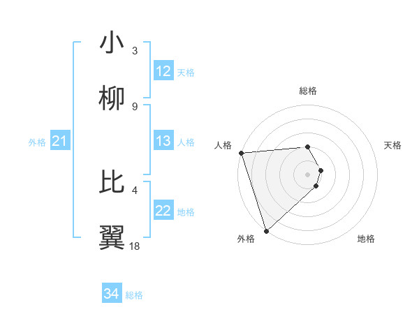 小柳 比翼さんの天格は12画の1点!