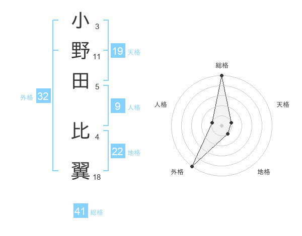 小野田 比翼さんの総格は41画の5点!