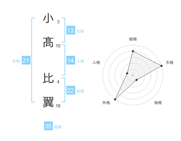 小髙 比翼さんを姓名の画数から五運を鑑定
